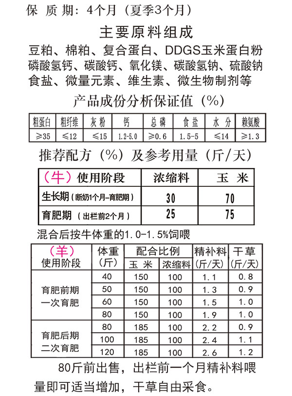 牛羊三保精補料