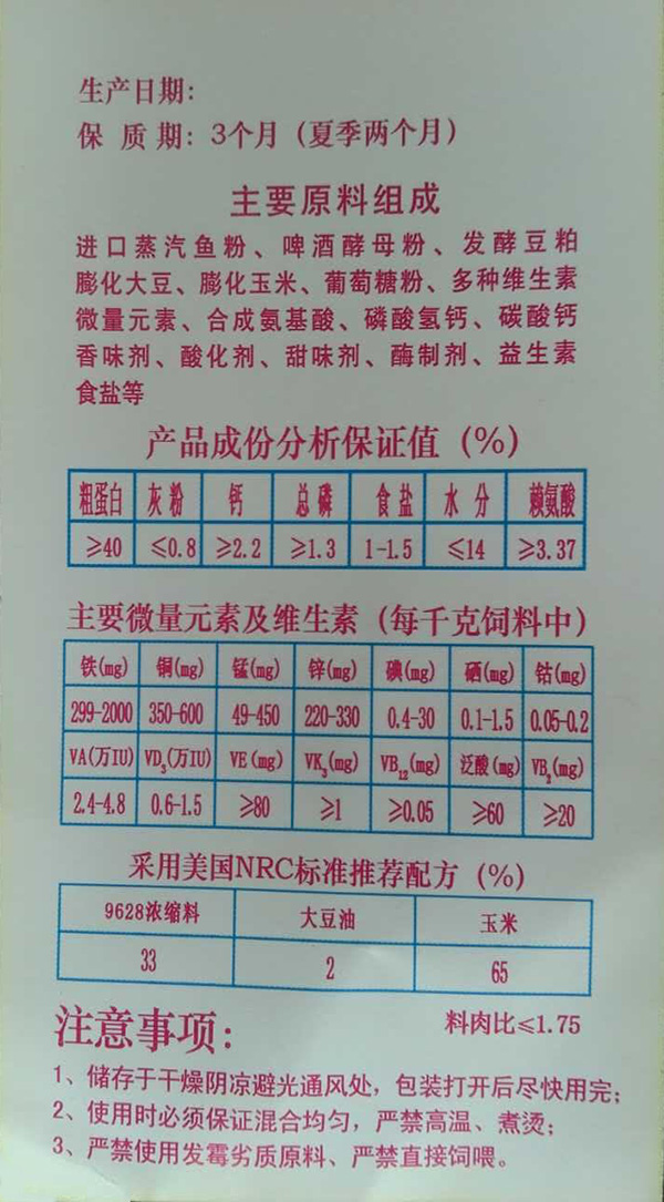 33%9628保育后期仔豬濃縮料