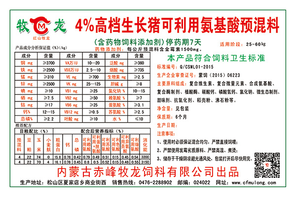 4%高檔生長(zhǎng)豬預(yù)混料