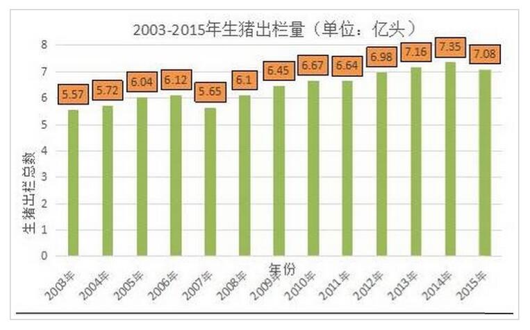 農(nóng)業(yè)部印發(fā)的《全國生豬生產(chǎn)發(fā)展規(guī)劃(2016-2020年)》顯示,長期以來,我國豬肉產(chǎn)量穩(wěn)居世界第一位,約占世界總量的一半。2015年,全國生豬存欄4.5億頭,出欄7.1億頭,豬肉產(chǎn)量5487萬噸,穩(wěn)居世界第一位。